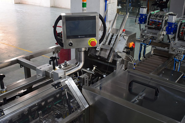 5、自動化程度高:采用PLC可編程控制系統(tǒng)、人機界面顯示裝盒速度、數(shù)量、缺紙盒自動報警、無產(chǎn)品不開盒,故障原因等參數(shù)。